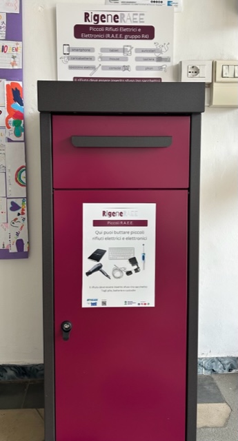 Presso il Comune di Bollengo è stato posizionato all'ingresso principale il contenitore nella foto dedicato ai piccoli rifiuti elettronici (categoria R4) quali, ad esempio, smartphone, caricabatterie, phon da viaggio, auricolari, spazzolini elettrici, console videogiochi, tablet: tutto ciò che per funzionare dipende dalla corrente elettrica collegato alla rete oppure alimentato da pile e batterie e che, quando smette di funzionare e diventa un rifiuto, deve essere conferito correttamente in modo separato rispetto agli altri rifiuti (differenziati e non). Possono essere conferiti in questi contenitori specifici, dunque, i R.a.e.e. (Rifiuti da apparecchiature e elettriche ed elettroniche) che entrano nella bocca calibrata del bidone (max 25 cm di diametro) privi del sacchetto eventualmente usato per trasportarli e senza pile/batterie stilo o custodie (la batteria del cellulare ovviamente viene conferita unitamente al dispositivo).