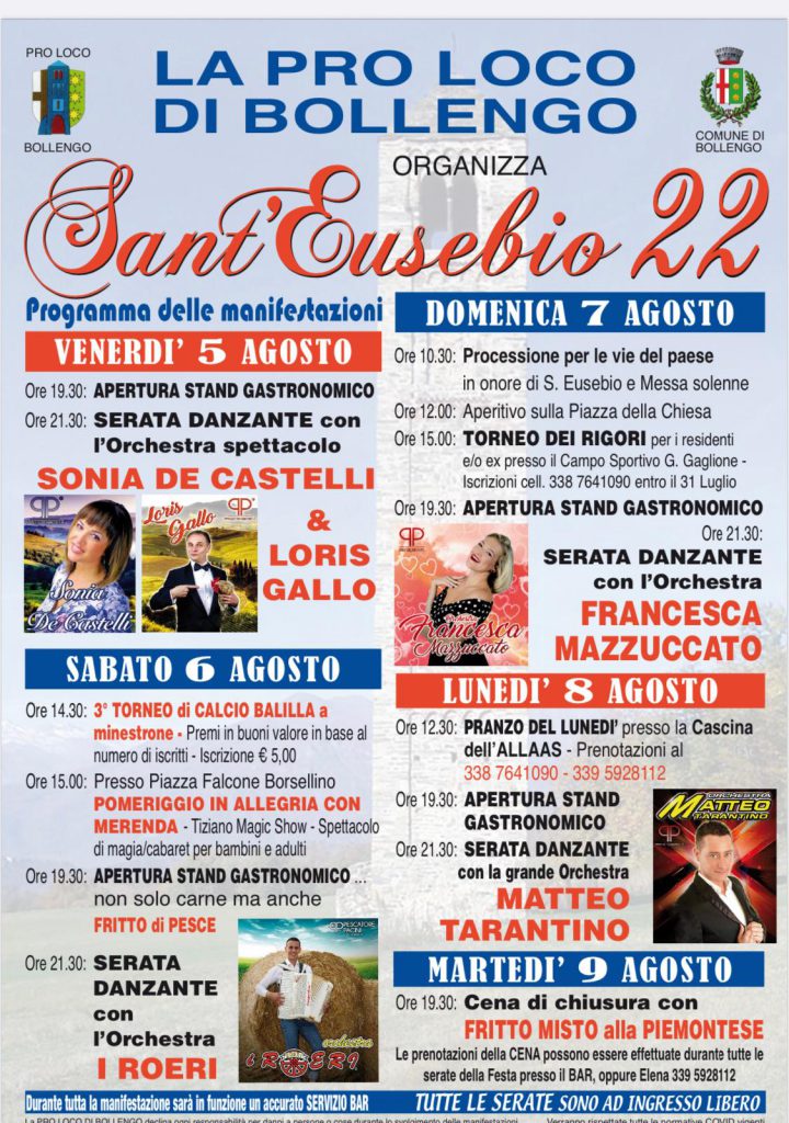 Festa patronale di Bollengo con cibo, musica, spettacoli, sport, tornei e tanto altro!