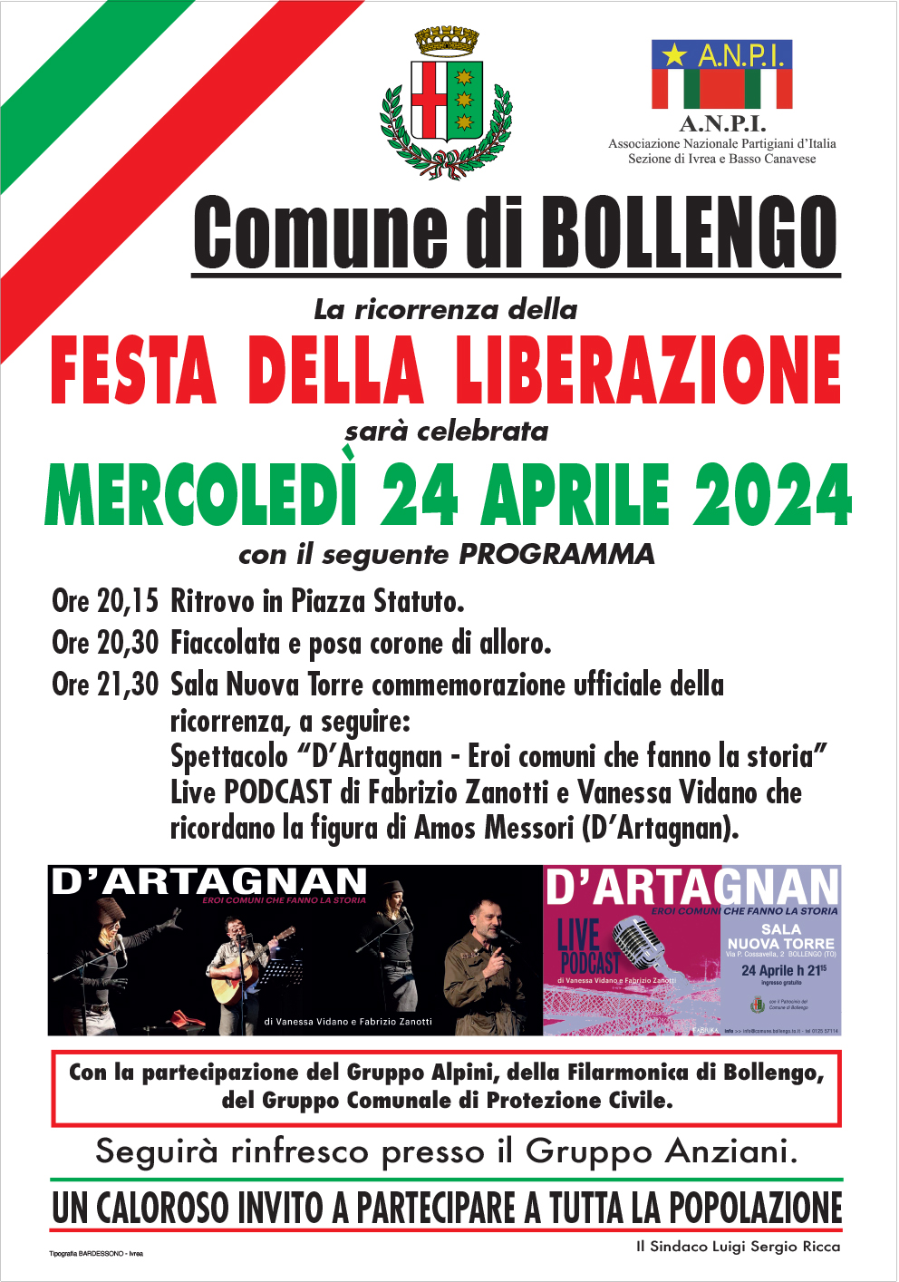 La ricorrenza della festa della liberazione sarà celebrata mercoledì 24 aprile 2024.